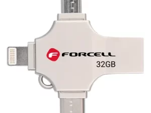 Флаш памет – Forcell F-Data Pendrive 32GB USB 3.2 Gen 1 (USB A / USB C / Lightning / Micro USB) Metal Quad – сребърна