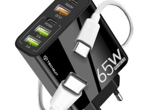 Зарядно устройство 220V – Premium Wall Charger PentaXPower (CHC2) – Type-C с кабел 3x USB QC 3.0, 2x Type-C PD 20W, 65W, 1m – черно