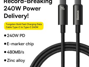 Кабел – BASEUS тип C към тип C PD240W Power Delivery Superior Series Fast Charging 1m – черен